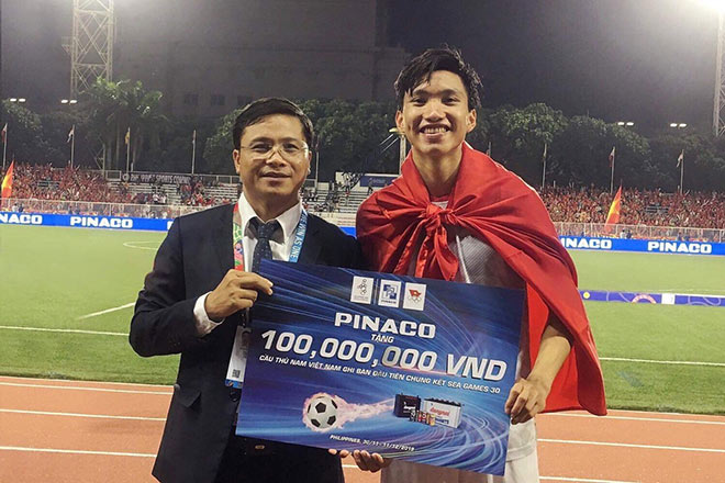 - Văn Hậu nhận thưởng tại sân: 100 triệu đồng từ PINACO