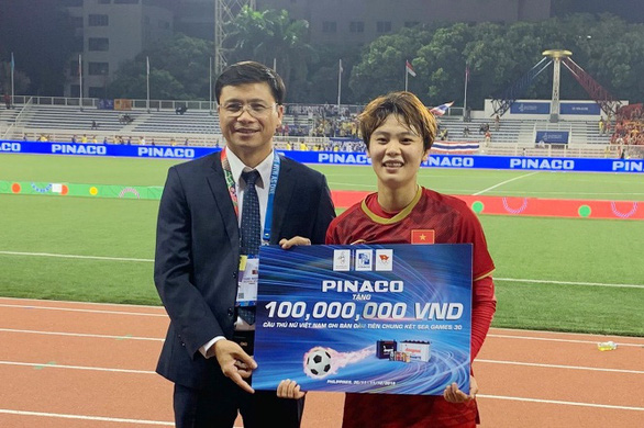 Với bàn thắng quý giá này, Hải Yến được trao thưởng 100 triệu đồng ngay sau trận đấu từ PINACO – nhà tài trợ bạch kim của SEA Games 2019, đồng thời cũng là nhà tài trợ đồng hành cùng Đoàn thể thao Việt Nam trong suốt hành trình SEA Games năm nay.