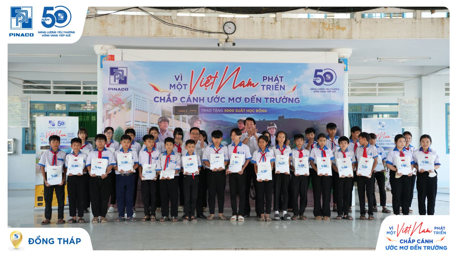 Ngày 26/01/2026, tại Trường THCS Trường Xuân, PINACO đã trao 300 suất học bổng, mỗi suất trị giá 800.000 đồng, đến các em học sinh thuộc 14 trường THCS & THPT trên địa bàn tỉnh Đồng Tháp.