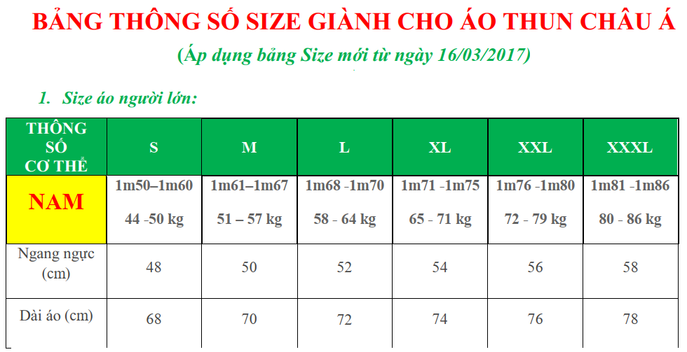 (theo thông số size áo nam Châu Á, và hình mẫu áo: xem trang đính kèm)