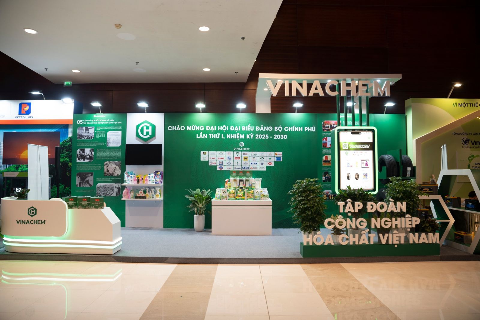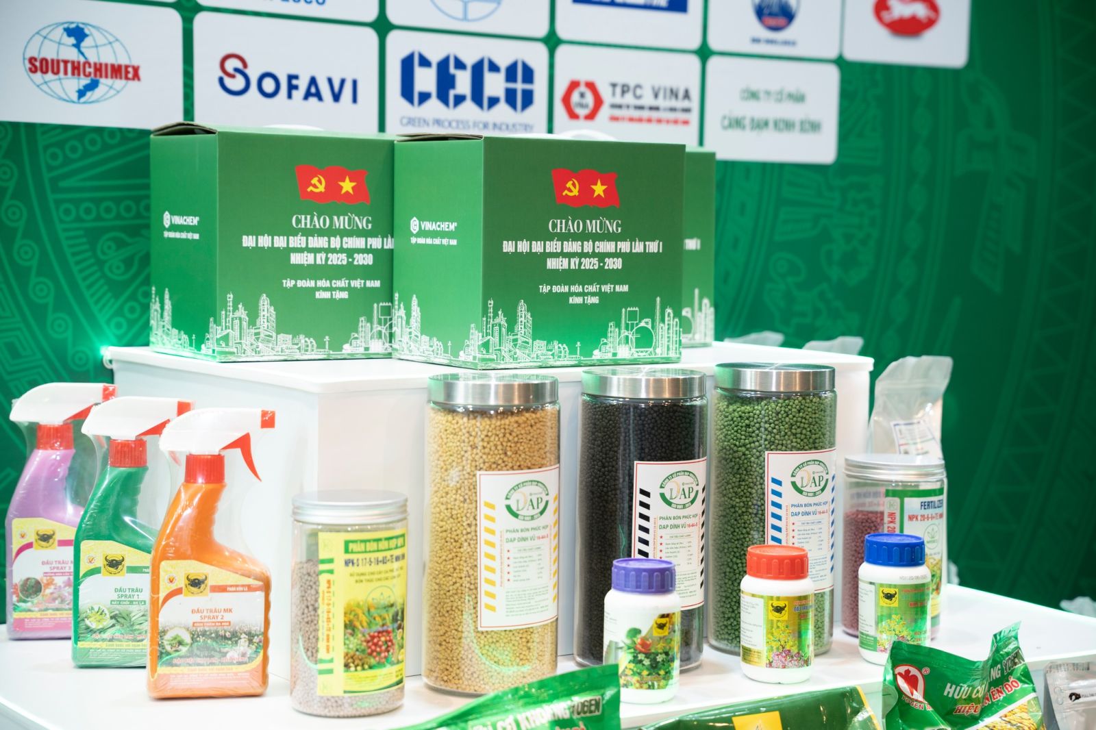 Gian trưng bày của Vinachem giới thiệu hệ thống sản phẩm chủ lực như phân bón, săm lốp, pin – ắc quy, chất tẩy rửa, thể hiện sự phát triển toàn diện và bền vững trên nhiều lĩnh vực. Đặc biệt, Tập đoàn còn chuẩn bị hộp quà lưu niệm thiết kế riêng mang nhận diện Vinachem – món quà ý nghĩa dành tặng các đại biểu tham dự Đại hội.