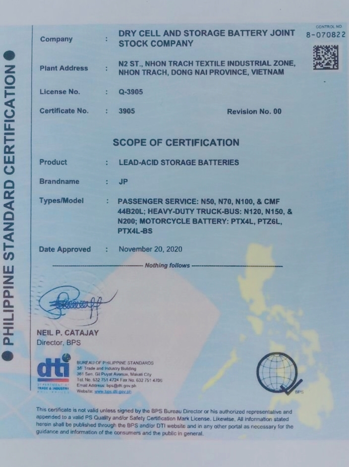 Chứng chỉ chất lượng về hàng hóa của Philippines