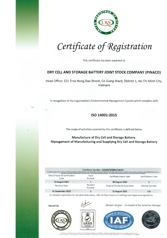 Environmental Management System complies with ISO 14001 current version