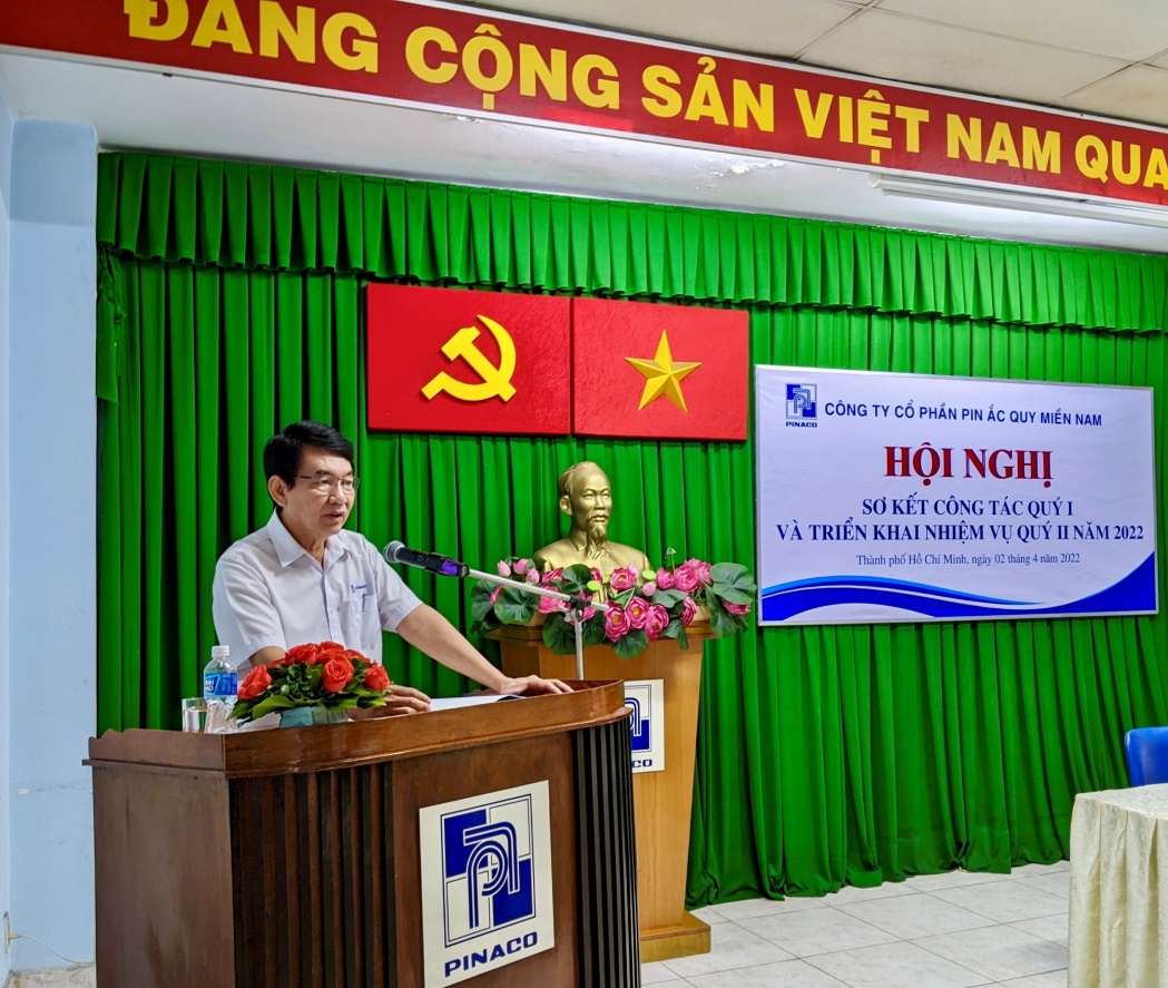 Ngày 02 tháng 4 năm 2022, Công ty Cổ phần Pin Ắc Quy Miền Nam - PINACO đã tổ chức thành công Hội nghị sơ kết các hoạt động SX-KD quý I và triển khai công tác quý II năm 2022. Đến tham dự Hội nghị, có đồng chí Lê Hoàng - Chủ Tịch HĐQT Công ty Cổ phần Pin Ắc Quy Miền Nam cùng với sự góp mặt của hơn 60 Đại biểu với thành phần là Ban lãnh đạo Công ty, Ban lãnh đạo các Xí nghiệp, trưởng phó phòng, trưởng bộ phận Công ty, quản đốc, phó quản đốc, tổ trưởng tiêu biểu các Xí nghiệp.