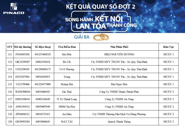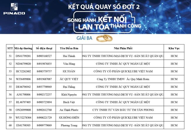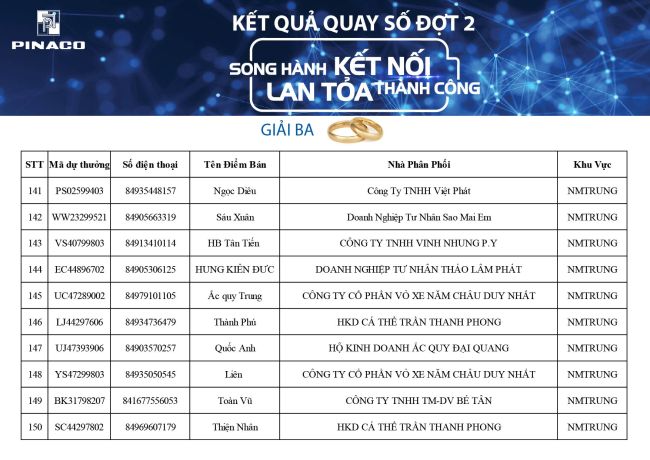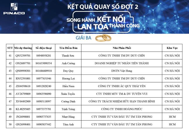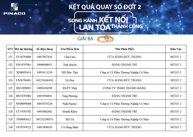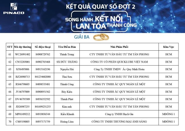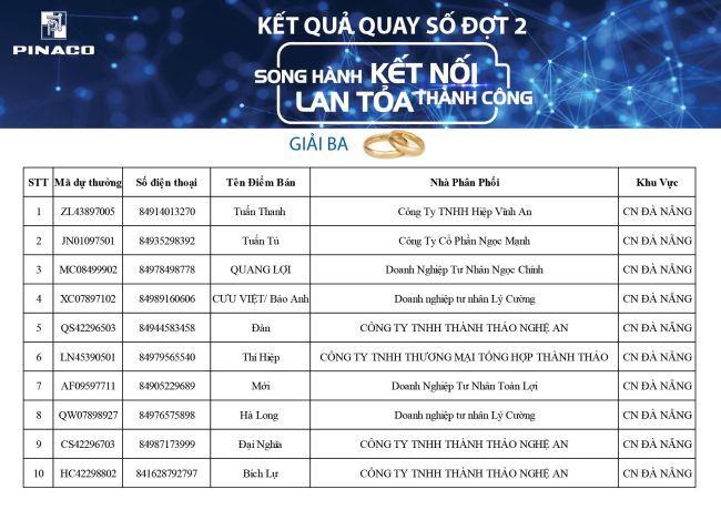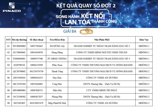 Dưới đây là kết quả quay số đợt 2 chương trình "Song Hành Kết Nối - Lan Tỏa Thành Công"
