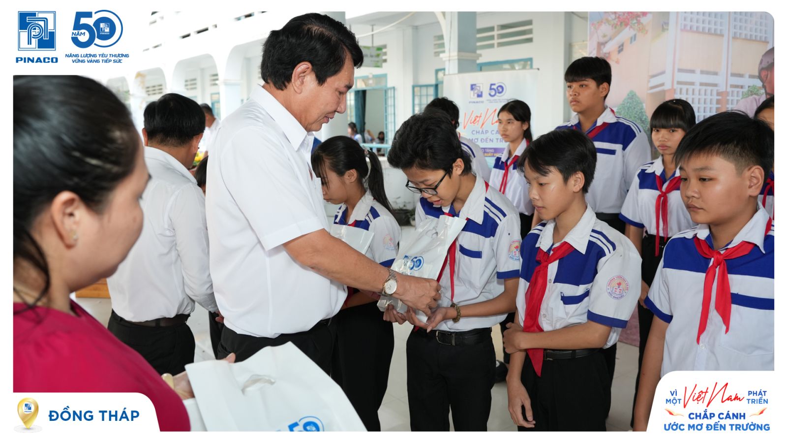 Ngày 26/01/2026, tại Trường THCS Trường Xuân, PINACO đã trao 300 suất học bổng, mỗi suất trị giá 800.000 đồng, đến các em học sinh thuộc 14 trường THCS & THPT trên địa bàn tỉnh Đồng Tháp.
