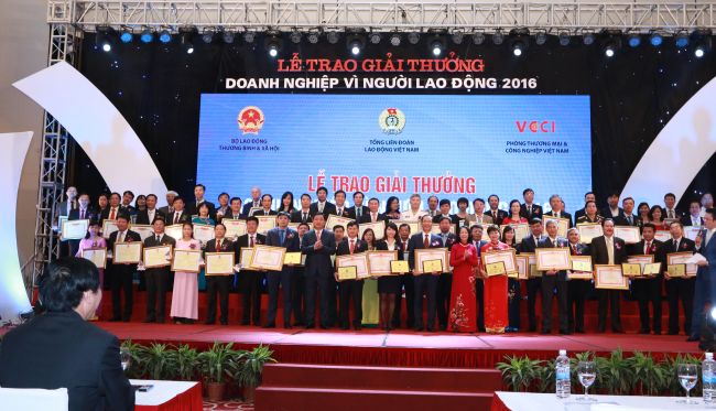 Sau quá trình đánh giá công phu, nghiêm túc, Hội đồng Giải thưởng đã lựa chọn 68 doanh nghiệp trên cả nước được vinh danh trong Bảng xếp hạng “Doanh nghiệp vì Người lao động” năm 2016, trong đó lựa chọn 15 doanh nghiệp xuất sắc nhất để trao tặng Giải thưởng “Doanh nghiệp vì Người lao động” lần đầu tiên - 2016.