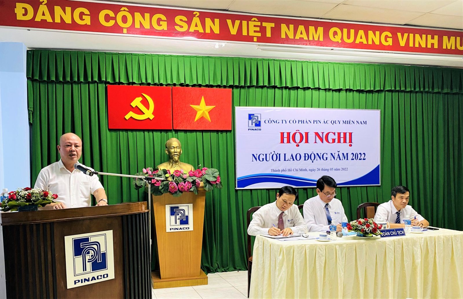 Vừa qua, PINACO tổ chức Hội nghị Người lao động năm 2022. Đến tham dự Hội nghị, về phía lãnh đạo cấp trên có có ông Nguyễn Phú Cường – Bí thư Đảng uỷ, Chủ tịch Hội đồng thành viên Tập đoàn Hóa chất Việt Nam; ông Lê Hoàng - Phó Tổng Giám đốc Tập đoàn Hóa chất Việt Nam; ông Nguyễn Huy Thông - Chủ tịch Công đoàn Công nghiệp Hóa chất Việt. Về phía PINACO có sự tham gia đầy đủ của Ban lãnh đạo Công ty, Ban lãnh đạo Xí nghiệp pin Con Ó, Ban lãnh đạo Xí nghiệp ắc quy Đồng Nai, Ban chấp hành Công đoàn Công ty cùng hơn 100 người lao động đại diện cho hơn 1.200 Người lao động trong toàn công ty.